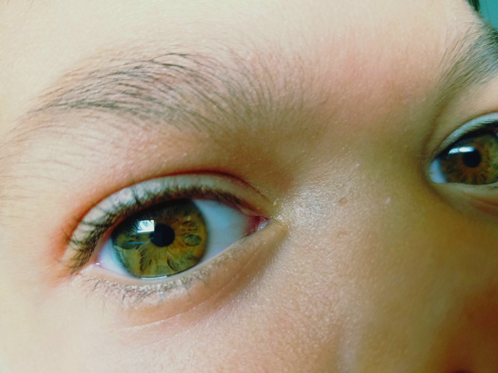 This isn't a painting this is my sons actual eye. Blue and greeneyed